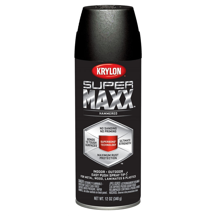 - Krylon Supermaxx Paint+Primer; Hammered Black; 12 oz. Aerosol